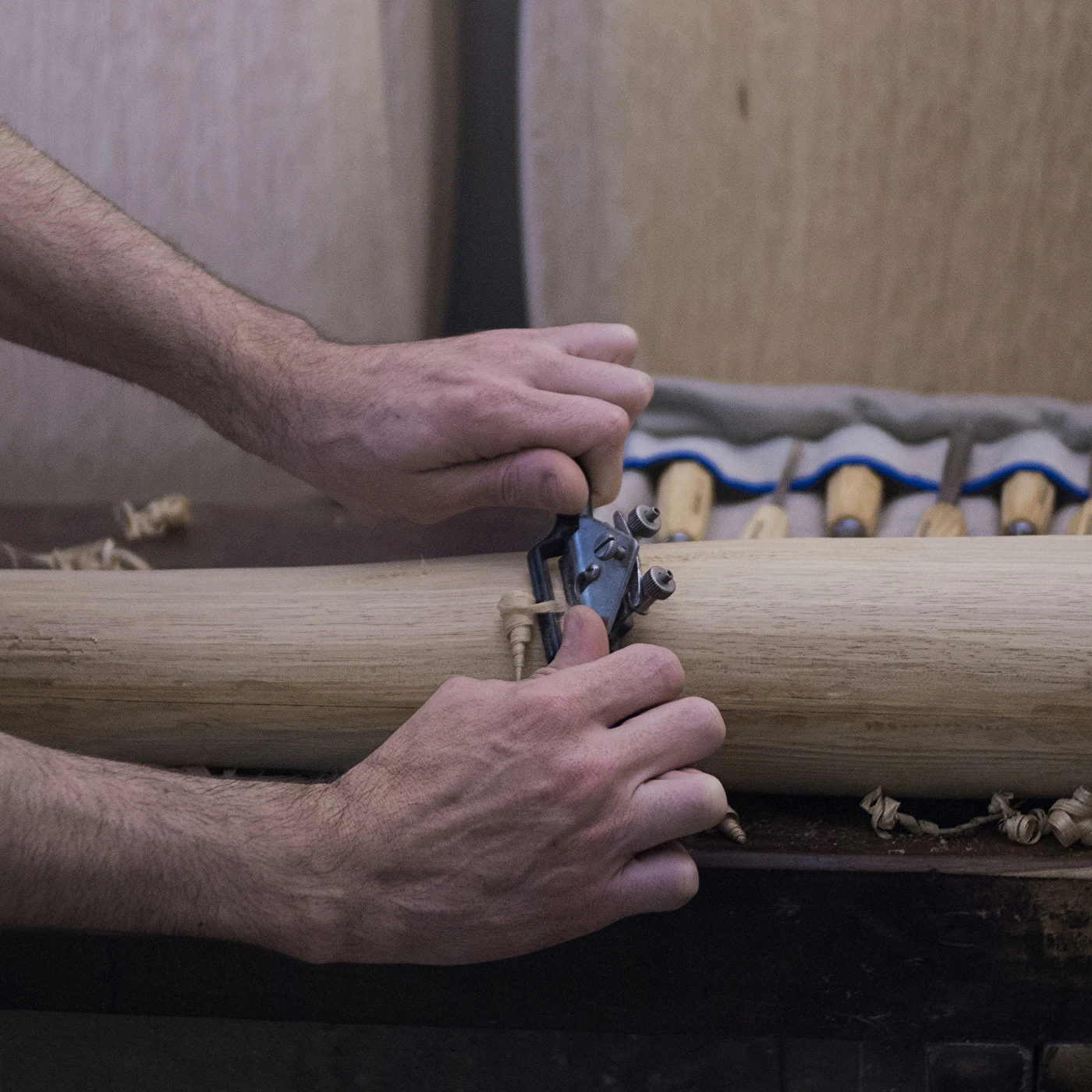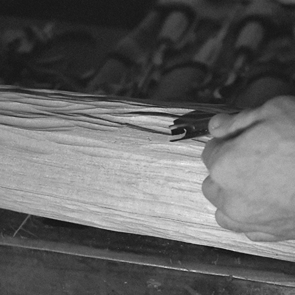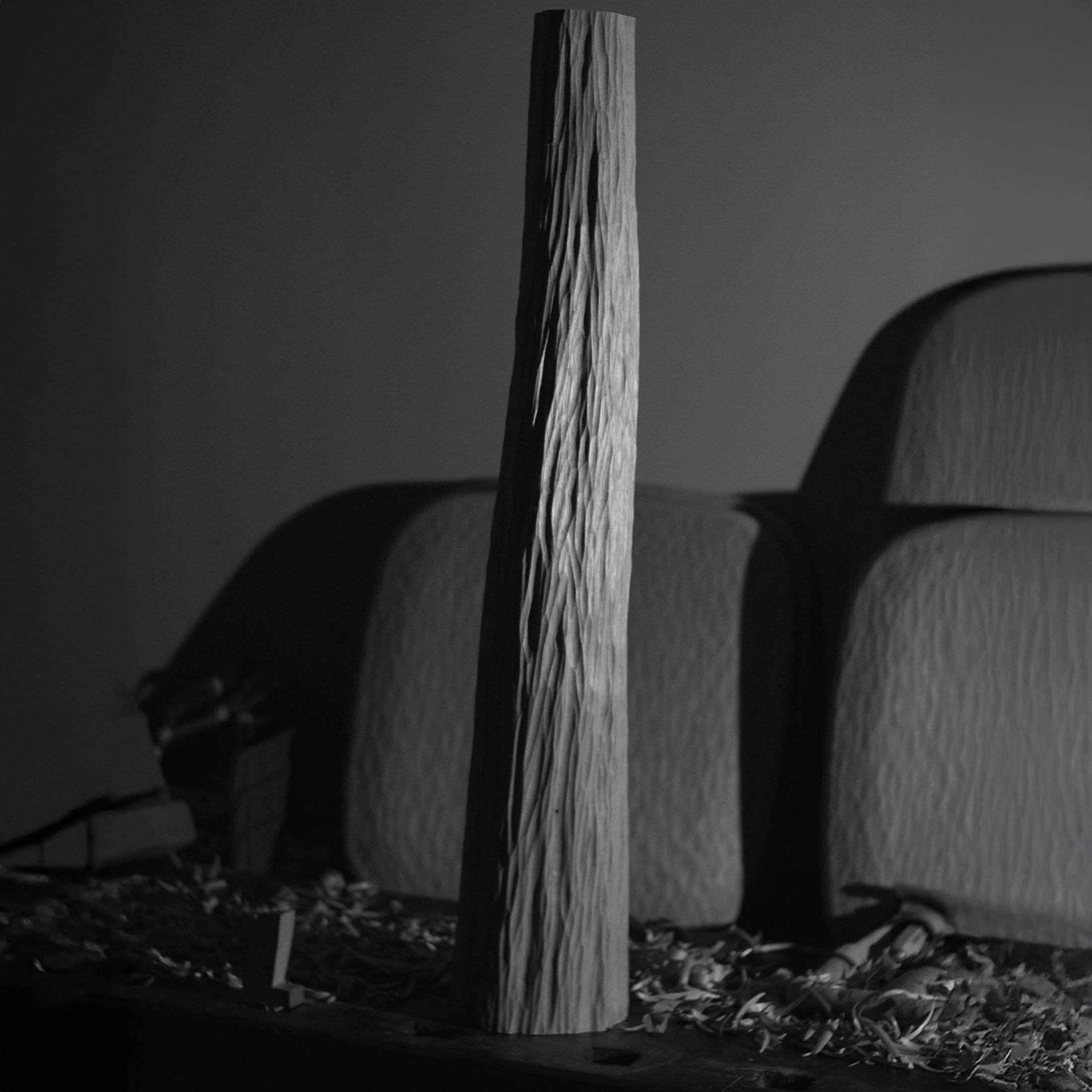 Móvel esculpido em Tauari e que apresenta texturas entalhadas à mão. O acabamento do tampo é feito em danish oil, e os pés são ebanizados. Toda a matéria prima utilizada pelo Estúdio Carmine é adquirida apenas com fornecedores que possuem o Documento de Origem Florestal (DOF). Assim, é possível garantir que a madeira provenha de áreas manejadas de forma sustentável, com foco na preservação da biodiversidade e na regeneração da vegetação, além de demonstrar respeito e valorização pela madeira nativa brasileira.