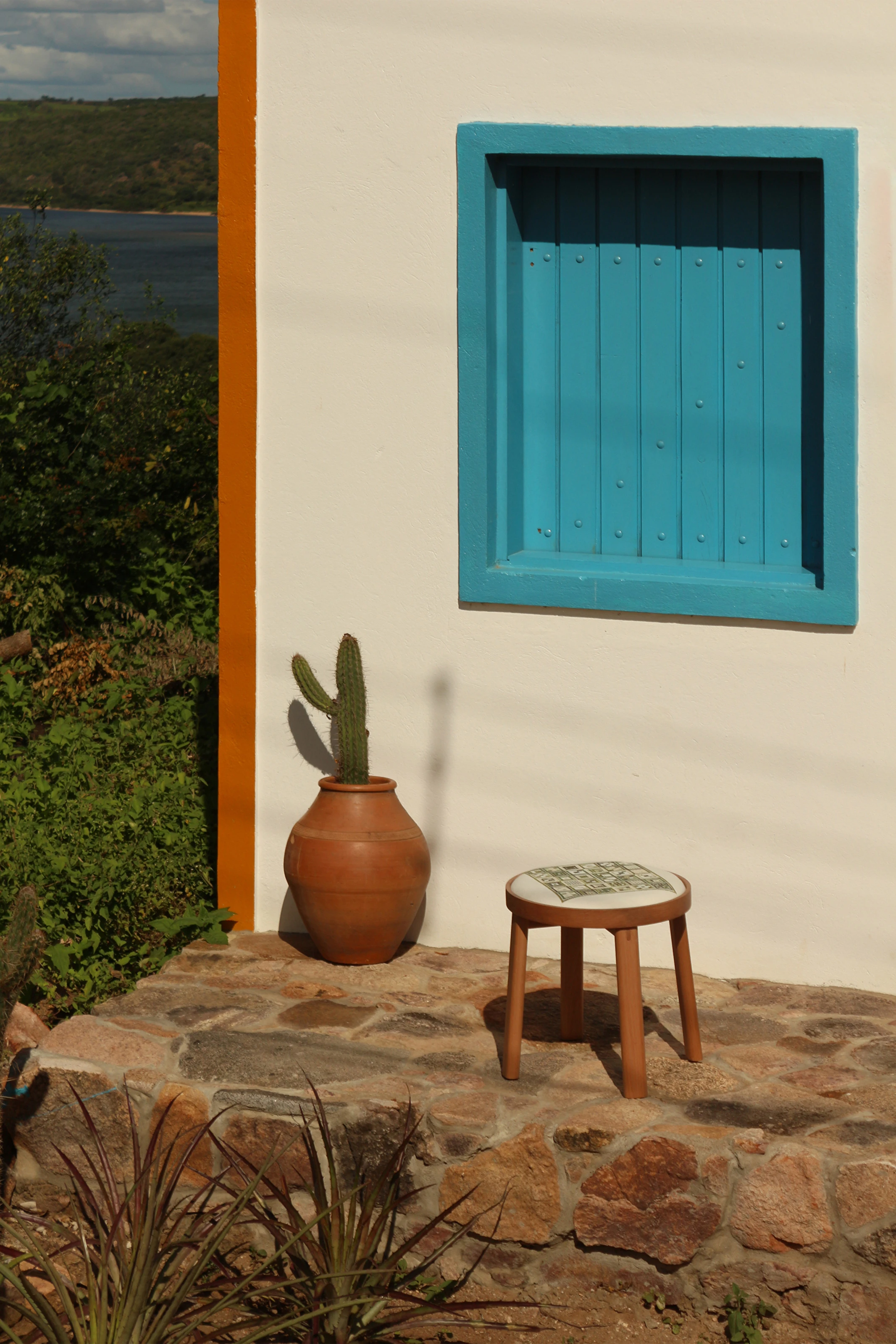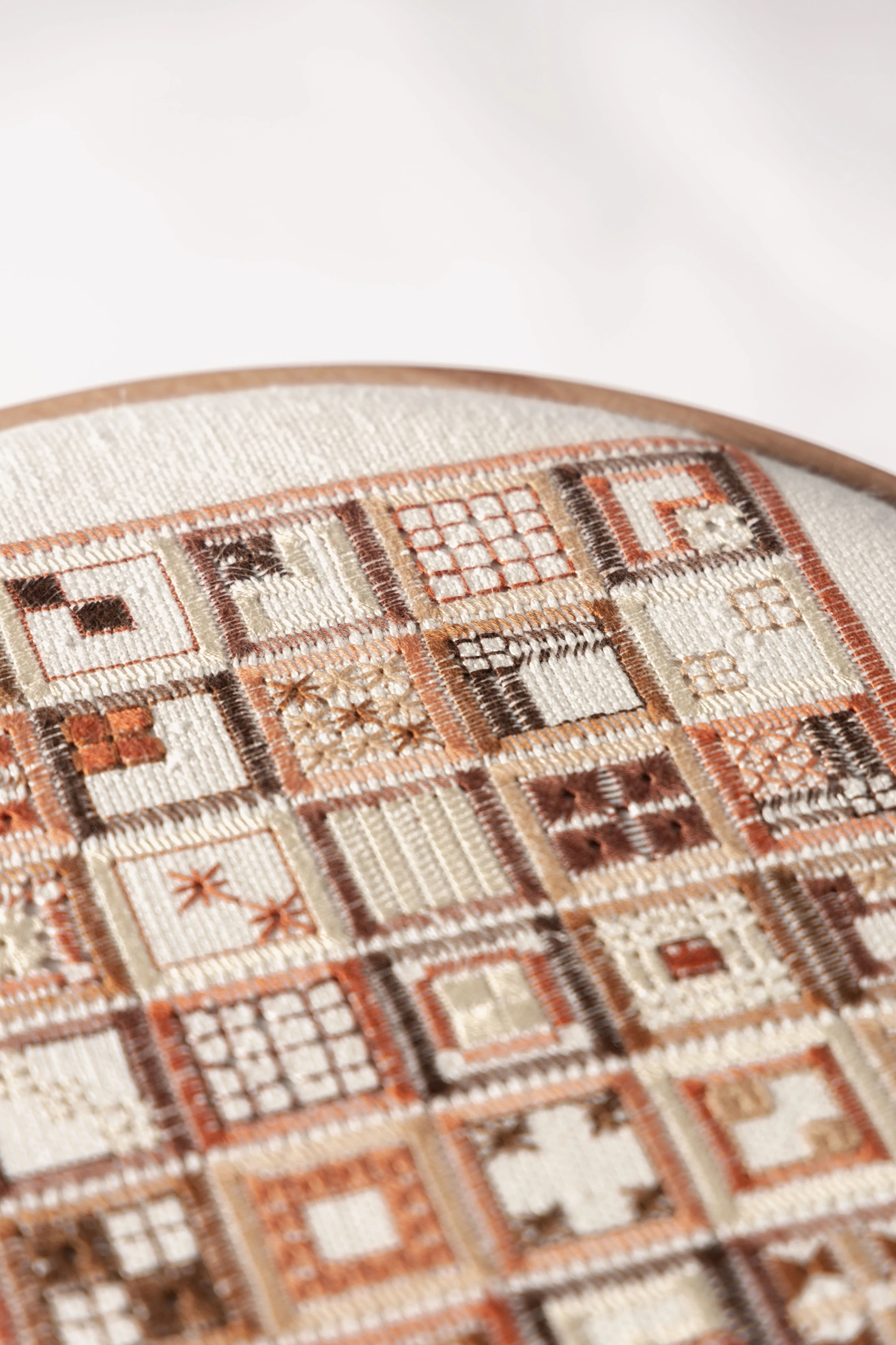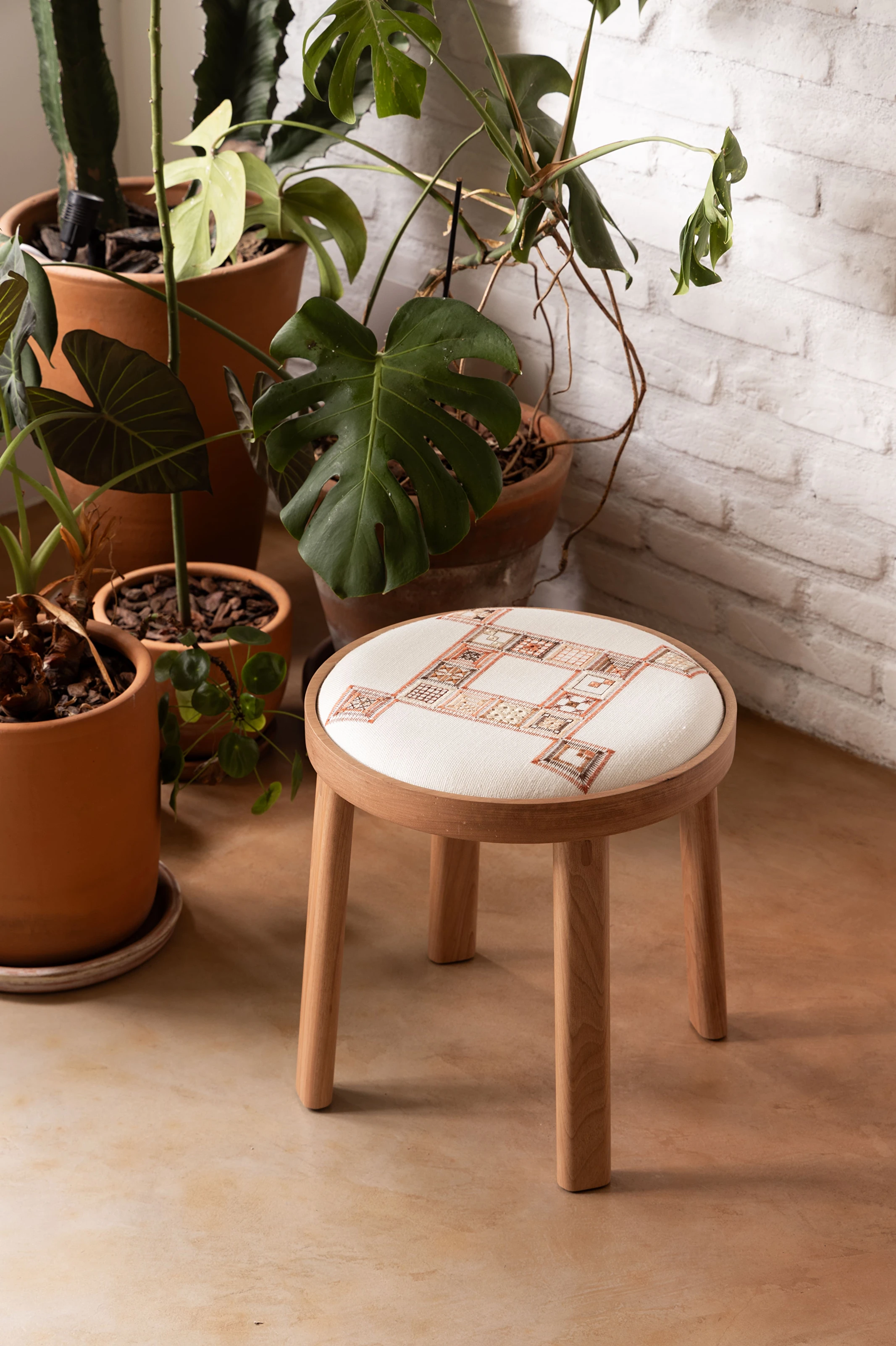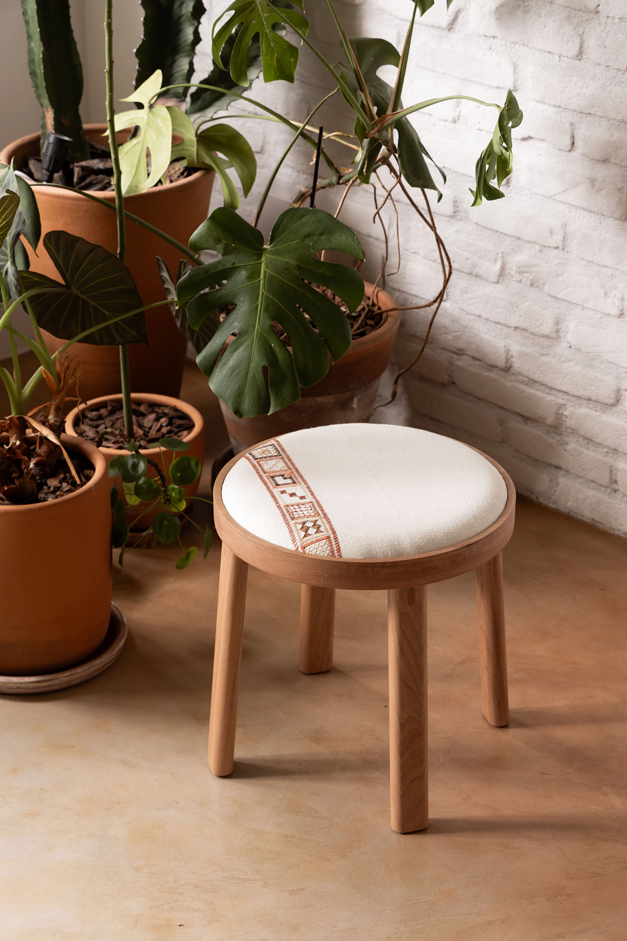 Tons de terracota sobre linho branco