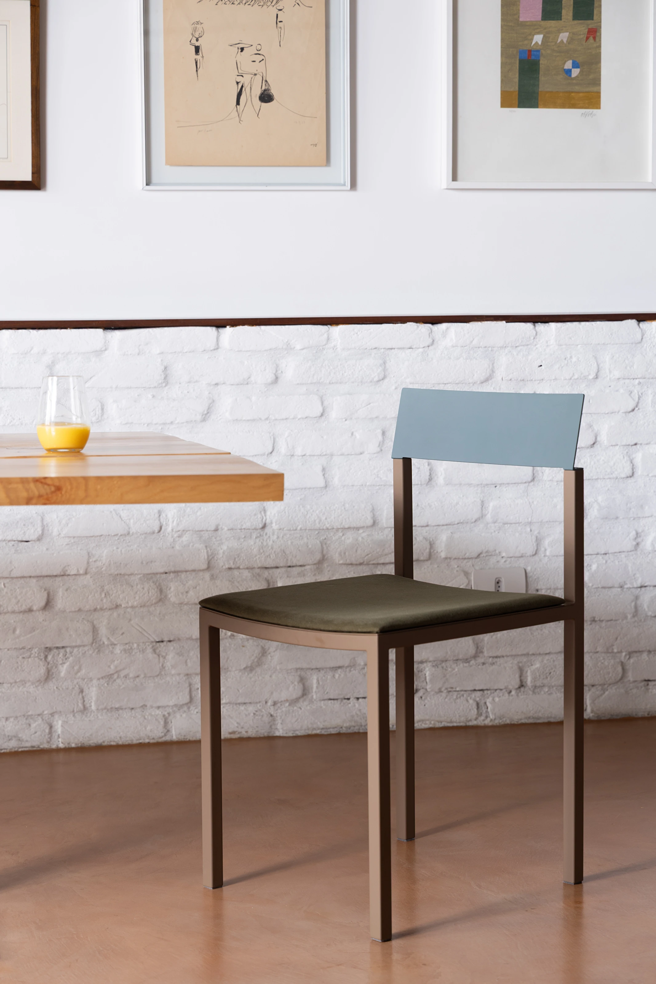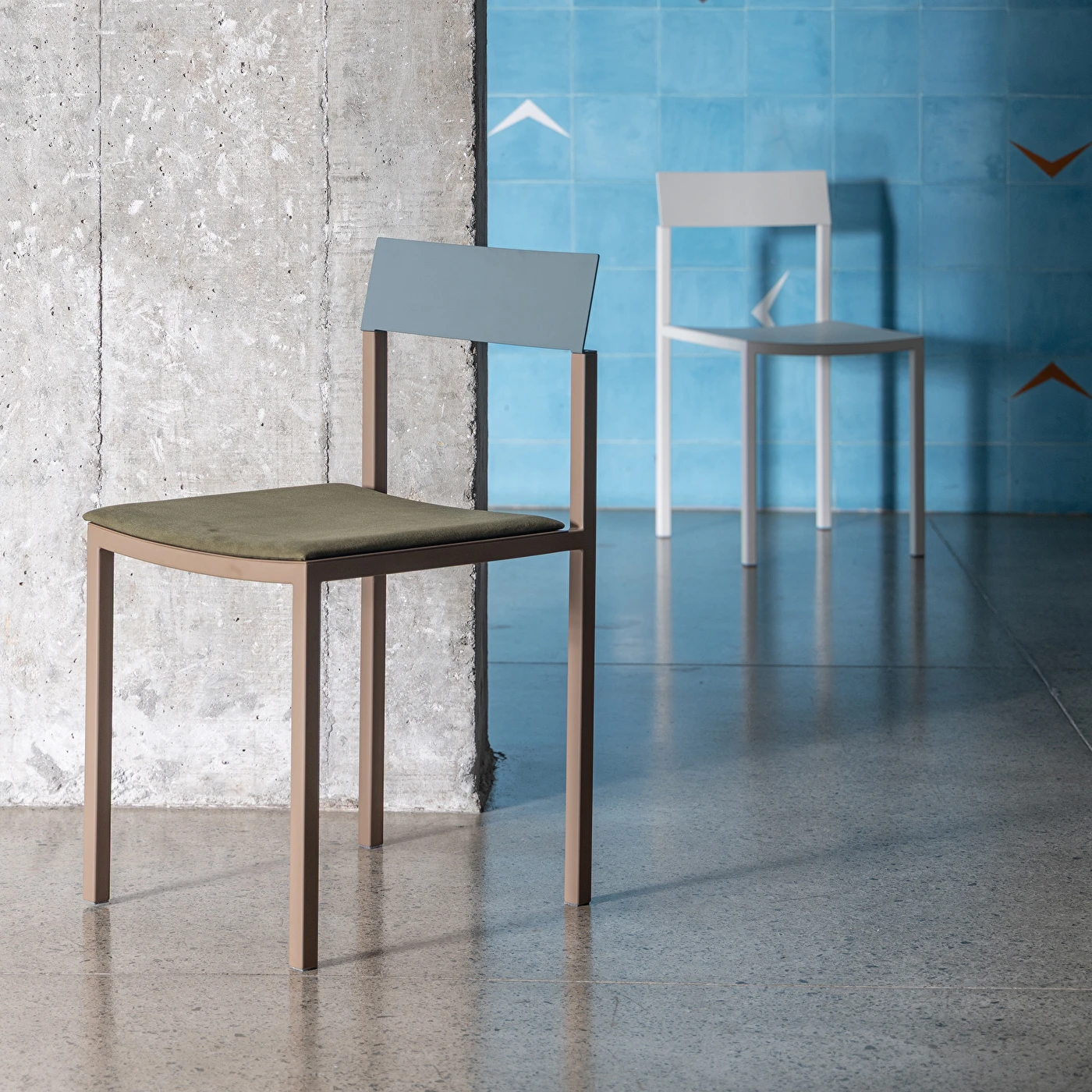A cadeira Degradê é uma peça que explora o encontro entre as