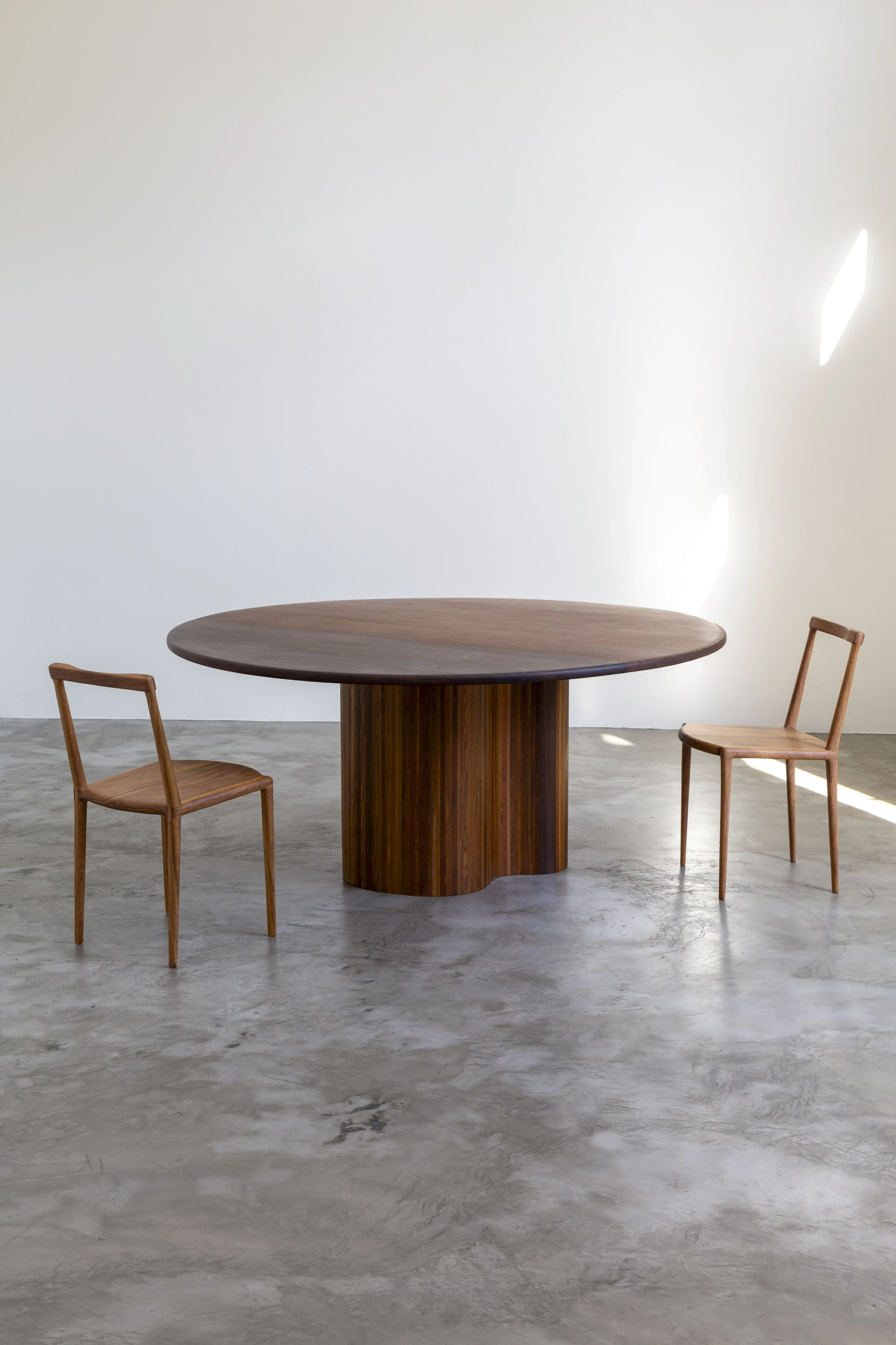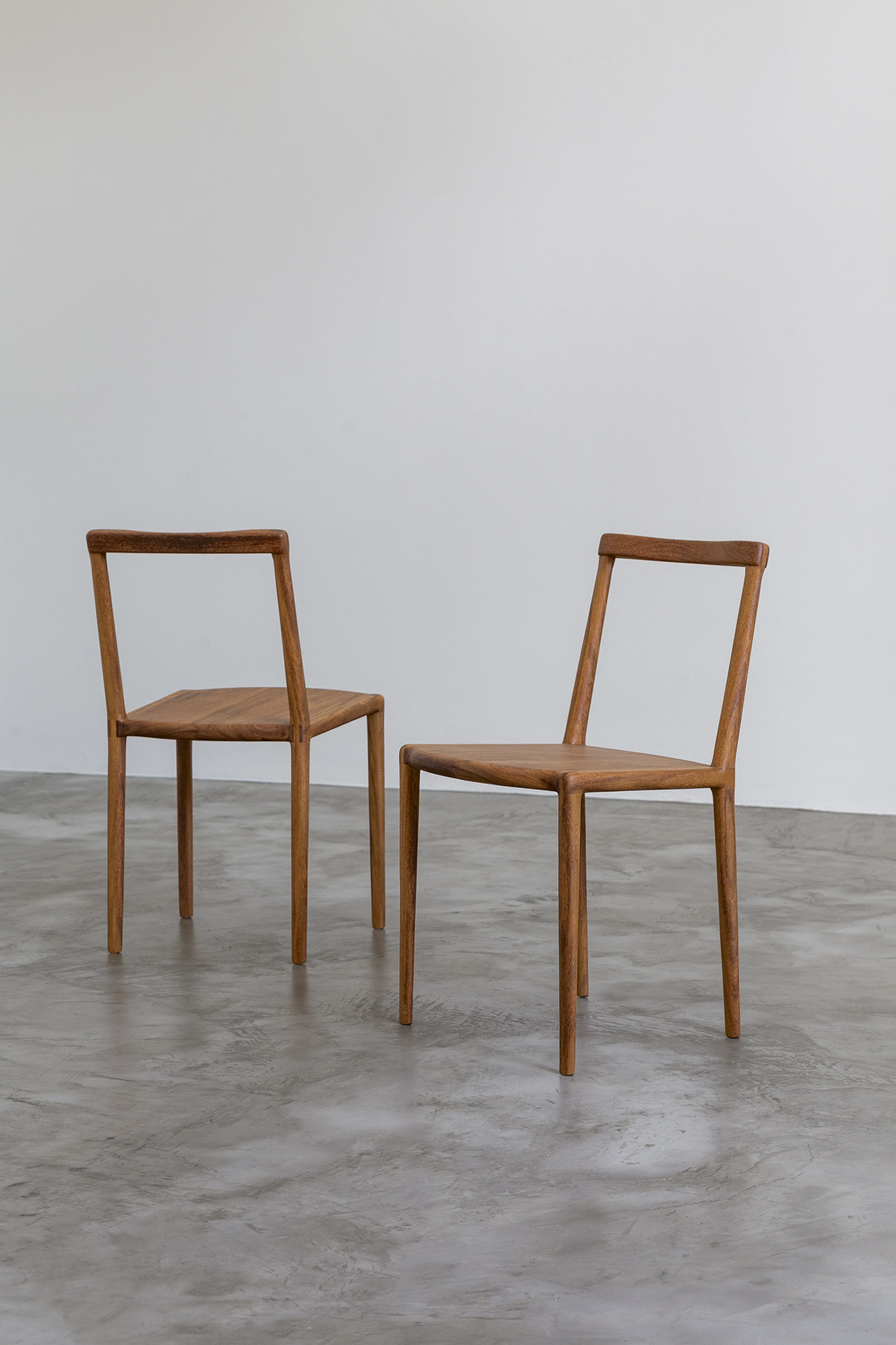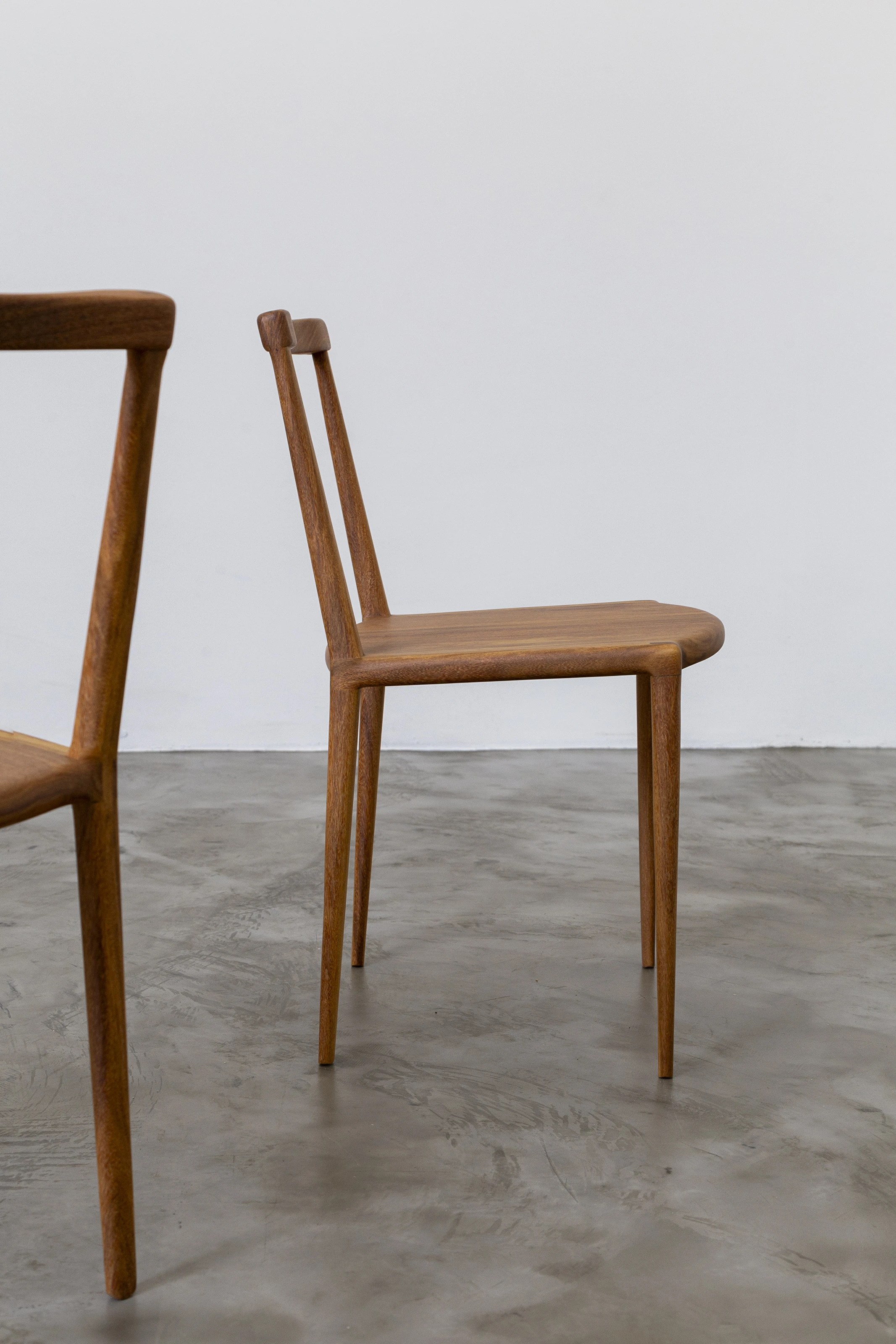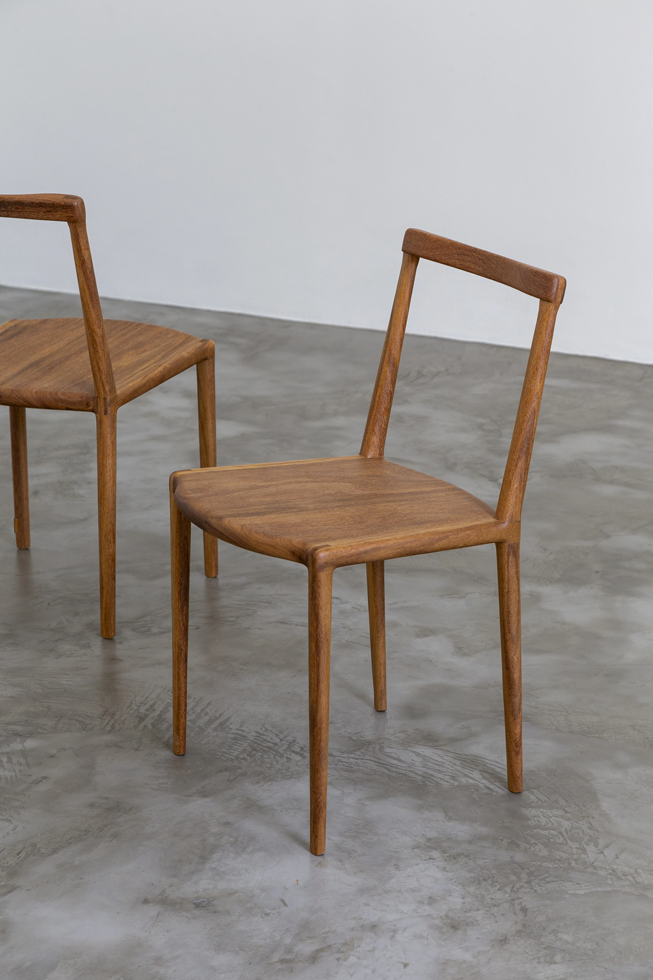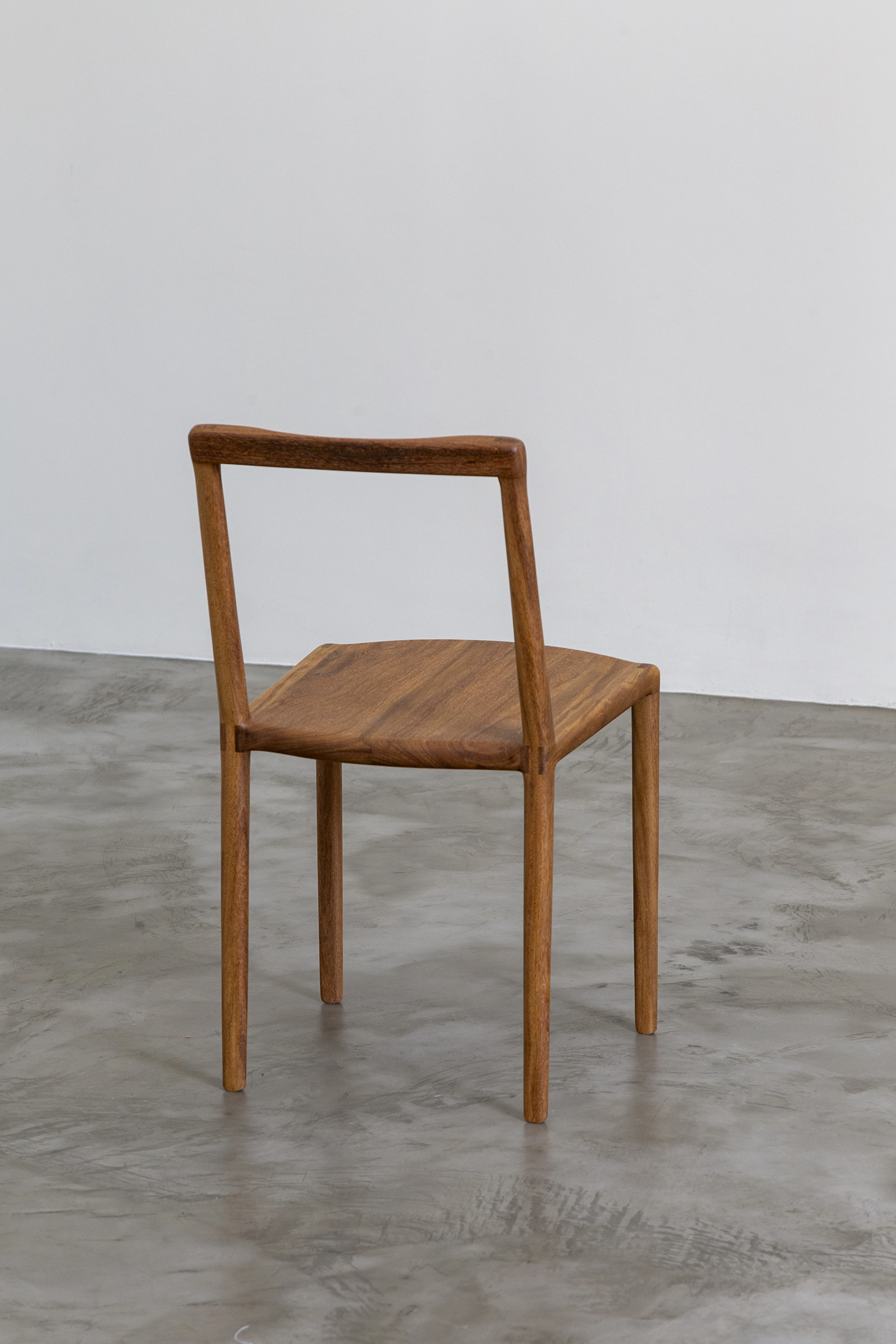 Gi surgiu em forma de provocação, “simples demais para ser verdade”. Uma cadeira que intriga através de sua simplicidade e faz o espectador querer vê-la de perto, buscando encontrar o que está faltando. A ausência de elementos estruturais tradicionais traz um espaço vazio que torna-se o verdadeiro protagonista dessa peça. As curvas de bordas e do encosto são esculpidas a mão apresentando declinações suaves e fluidas que remetem à formas orgânicas encontradas na natureza.