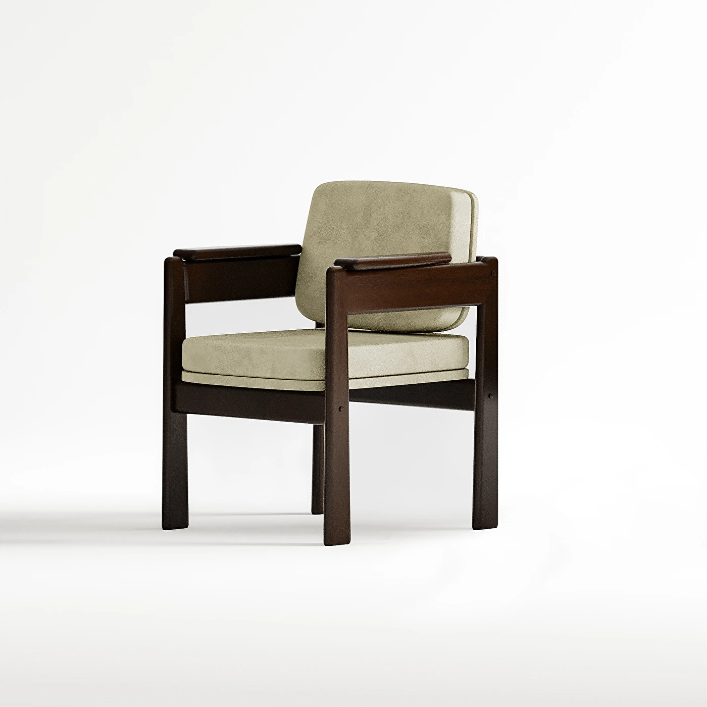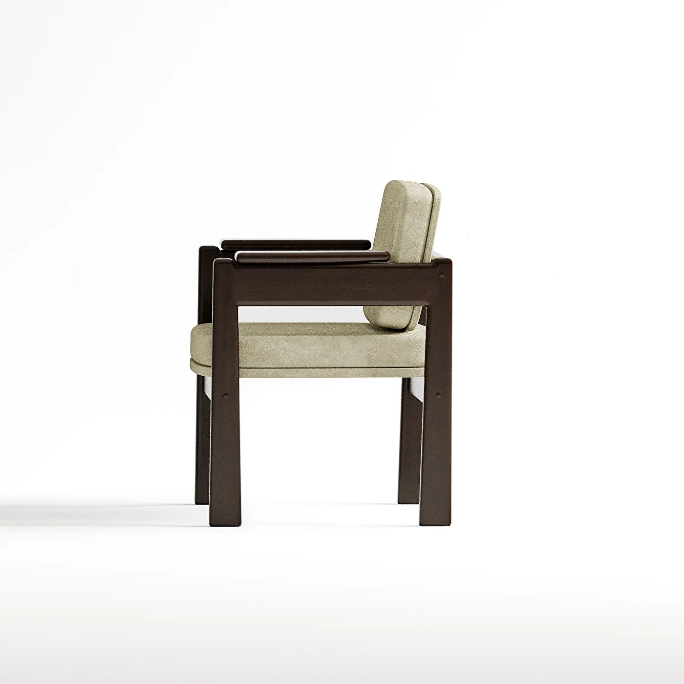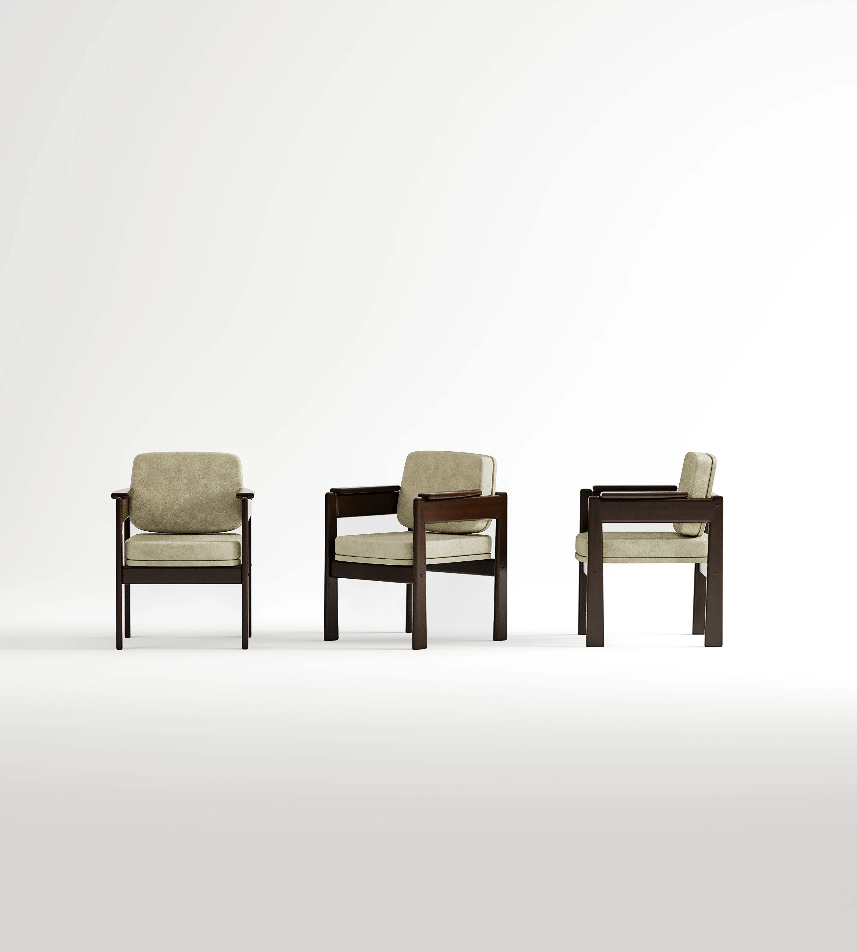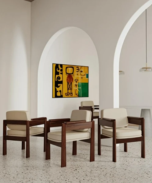 A Cadeira Márcia é uma síntese de design moderno com toque clássico. Seus braços contínuos em madeira maciça se unem à leve inclinação do encosto e almofadas largas e confortáveis, formando uma peça ideal para recepções, salas de espera, ambientes sociais ou home office sofisticados.