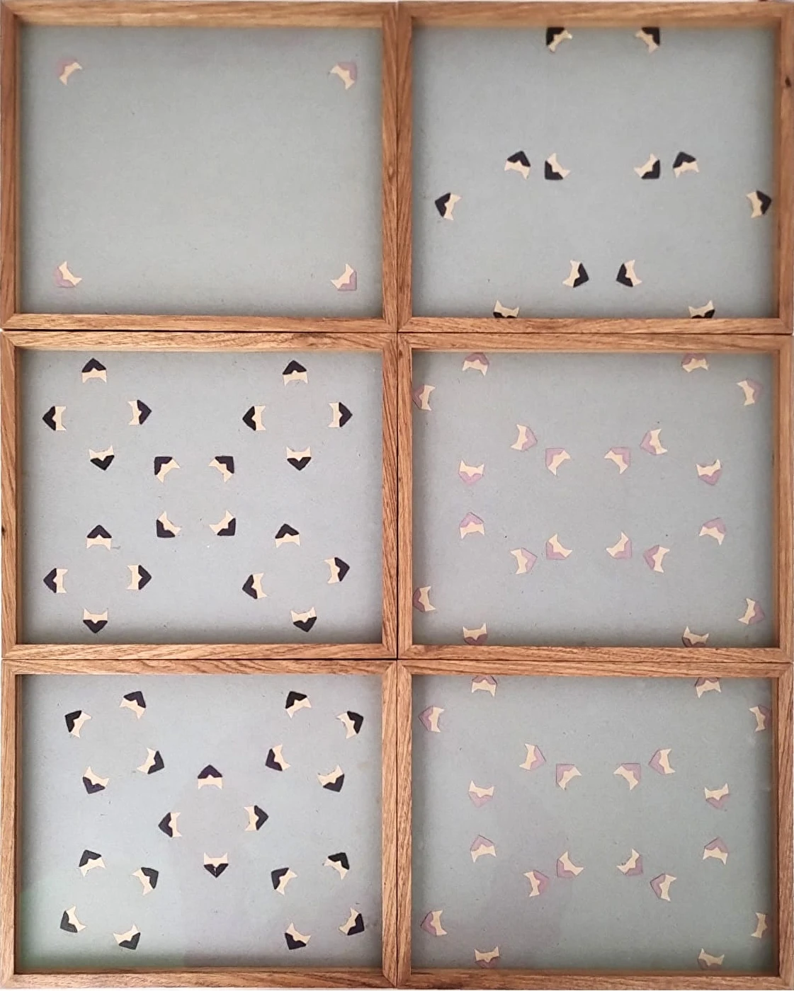 Em “Memórias esquecidas” páginas de álbuns de fotos antigos compõem esse políptico composto por 6 molduras de 25 x 31 cada.