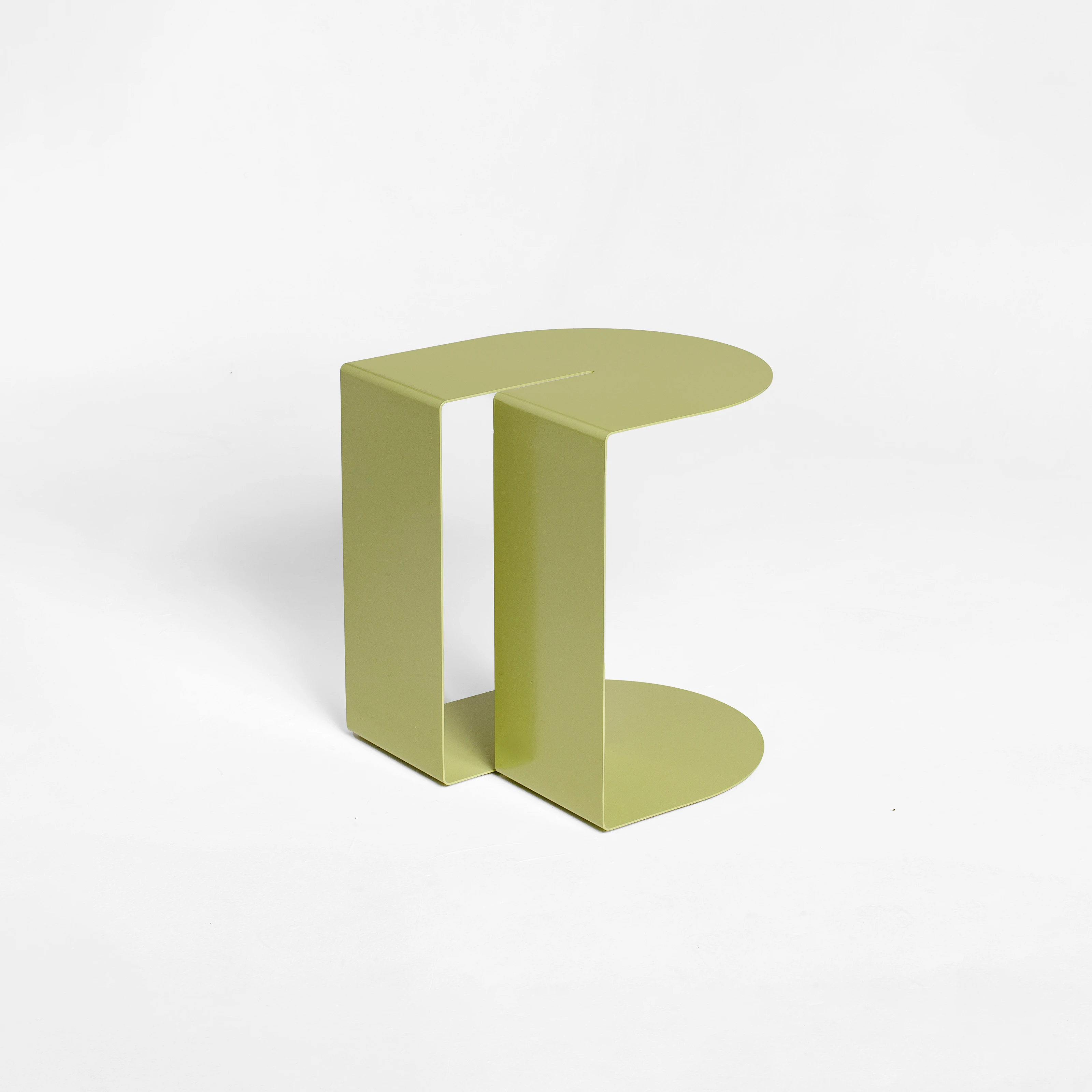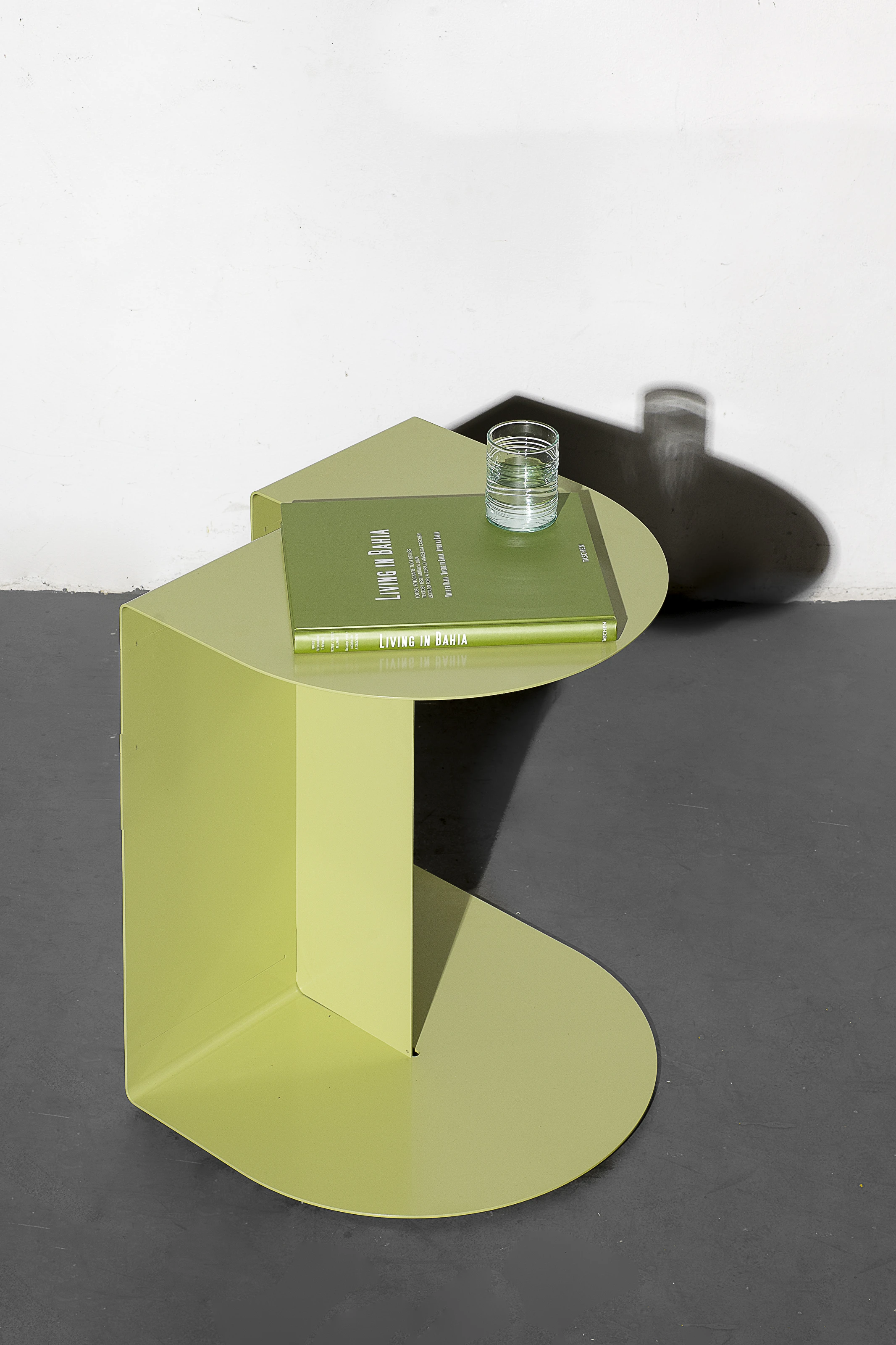 As mesas de apoio Fita possuem um desenho que reúne síntese e movimento, gerando curiosidade sobre seu uso e estrutura.