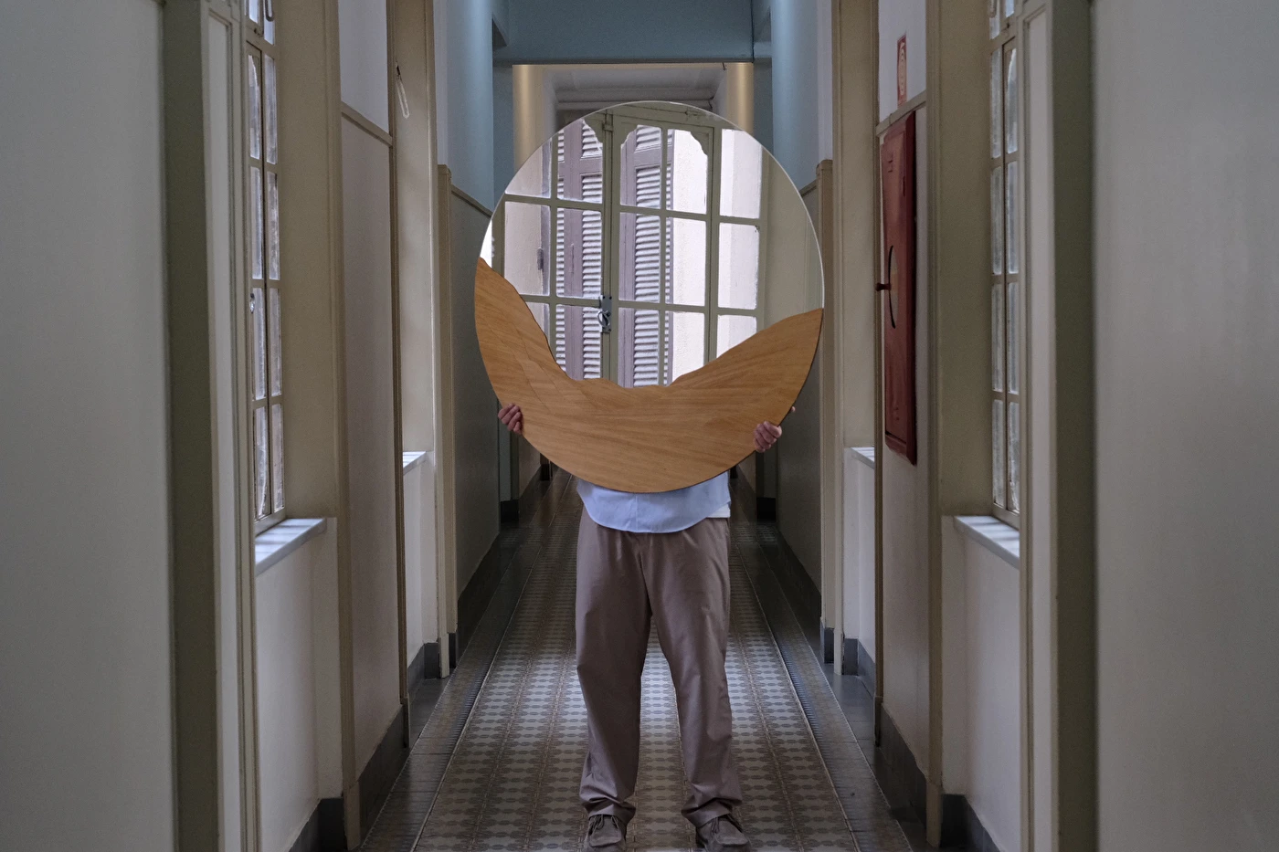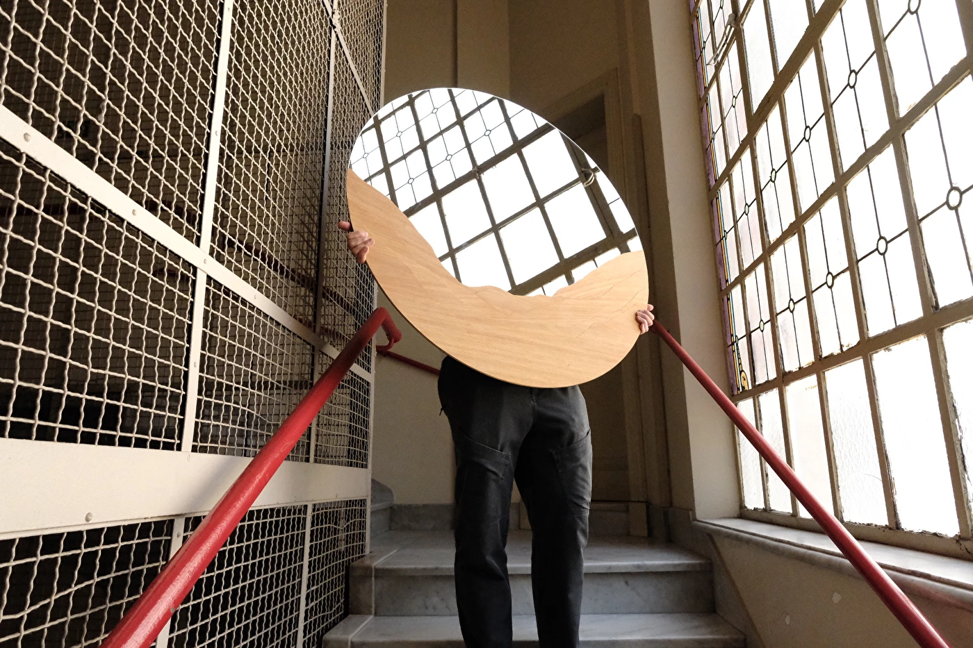 Relançamento do Espelho Paisagens Imaginárias agora somente na versão com 1 metro de diâmetro. Este espelho é confeccionado artesanalmente utilizando uma técnica de marchetaria desenvolvido pelo Atelier Pistache Ganache esculpindo paisagens através dos veios naturais da madeira. A sobreposição de folhas de pinho laminado criam paisagens e topografias imaginárias que emolduram o reflexo dando profundidade de forma elegante e refinada. Cada peça é feita a mão e numerada individualmente.