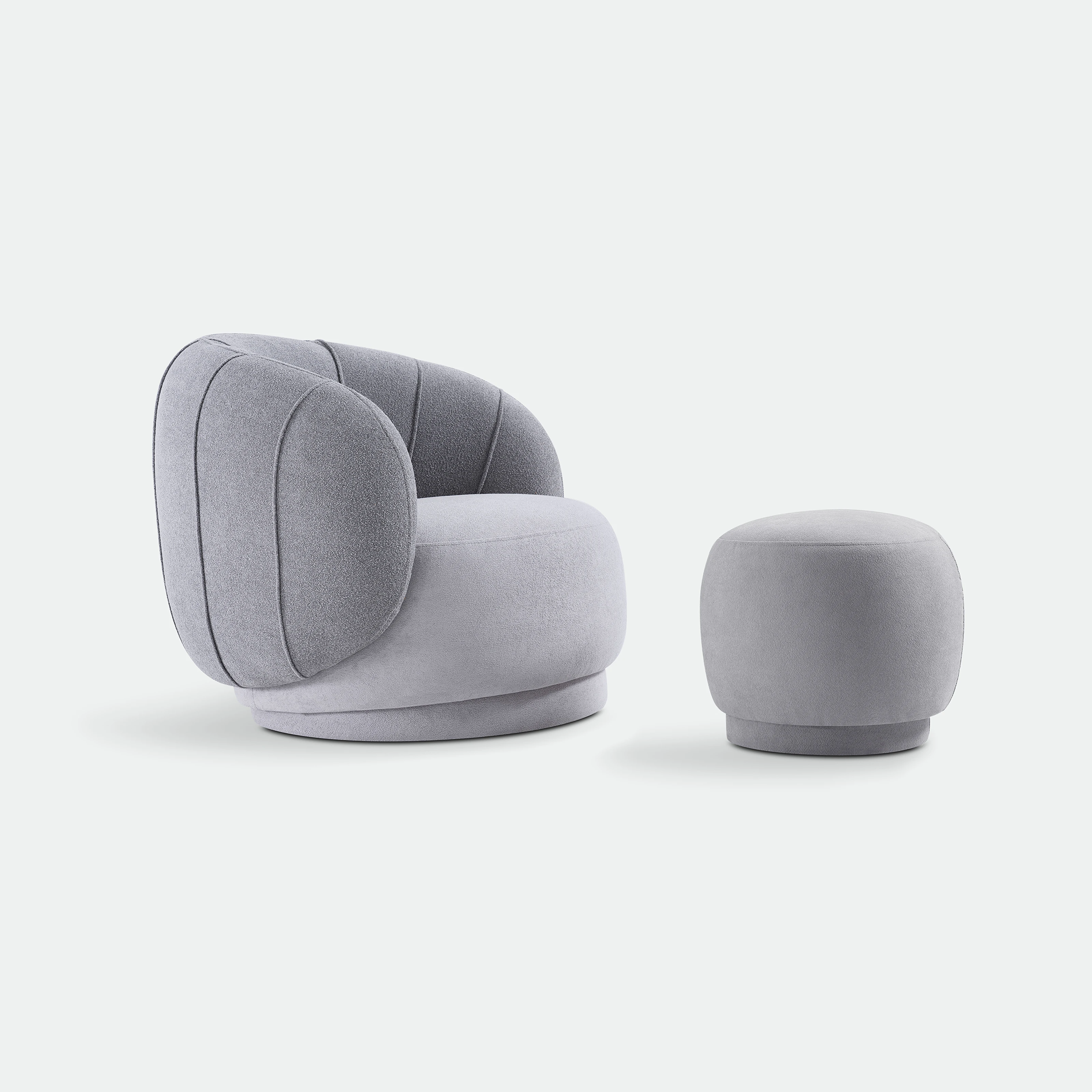 Com linhas curvas suaves e contínuas, o desenho arredondado, inspirado no meio natural, da Poltrona Concha, abraça e traz conforto. Os detalhes em costura no encosto remetem as nervuras das carapaças dos moluscos: as conchas que protegem e acolhem os animais.