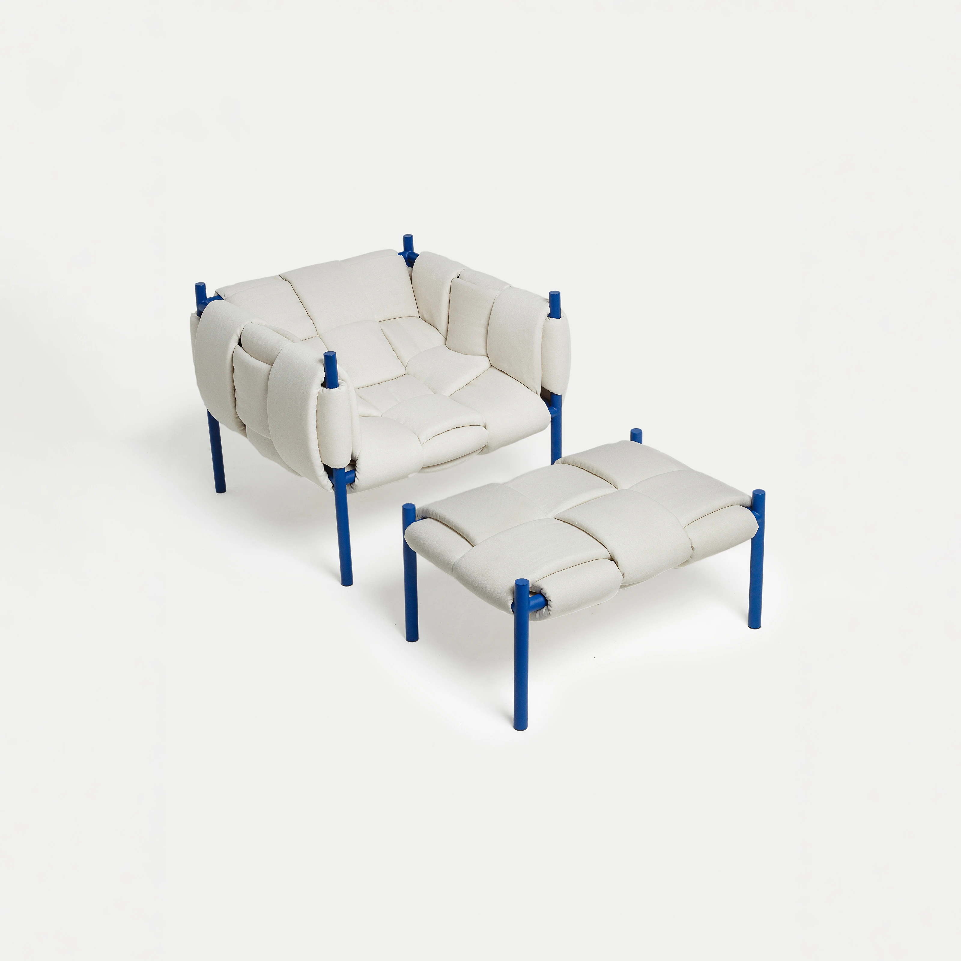 A poltrona é construída com uma malha de tiras de espuma cobertas por tecido, sustentadas por uma estrutura tubular metálica. O ottoman segue o mesmo princípio de construção, e em conjunto com a poltrona possibilita diversas formas de sentar.