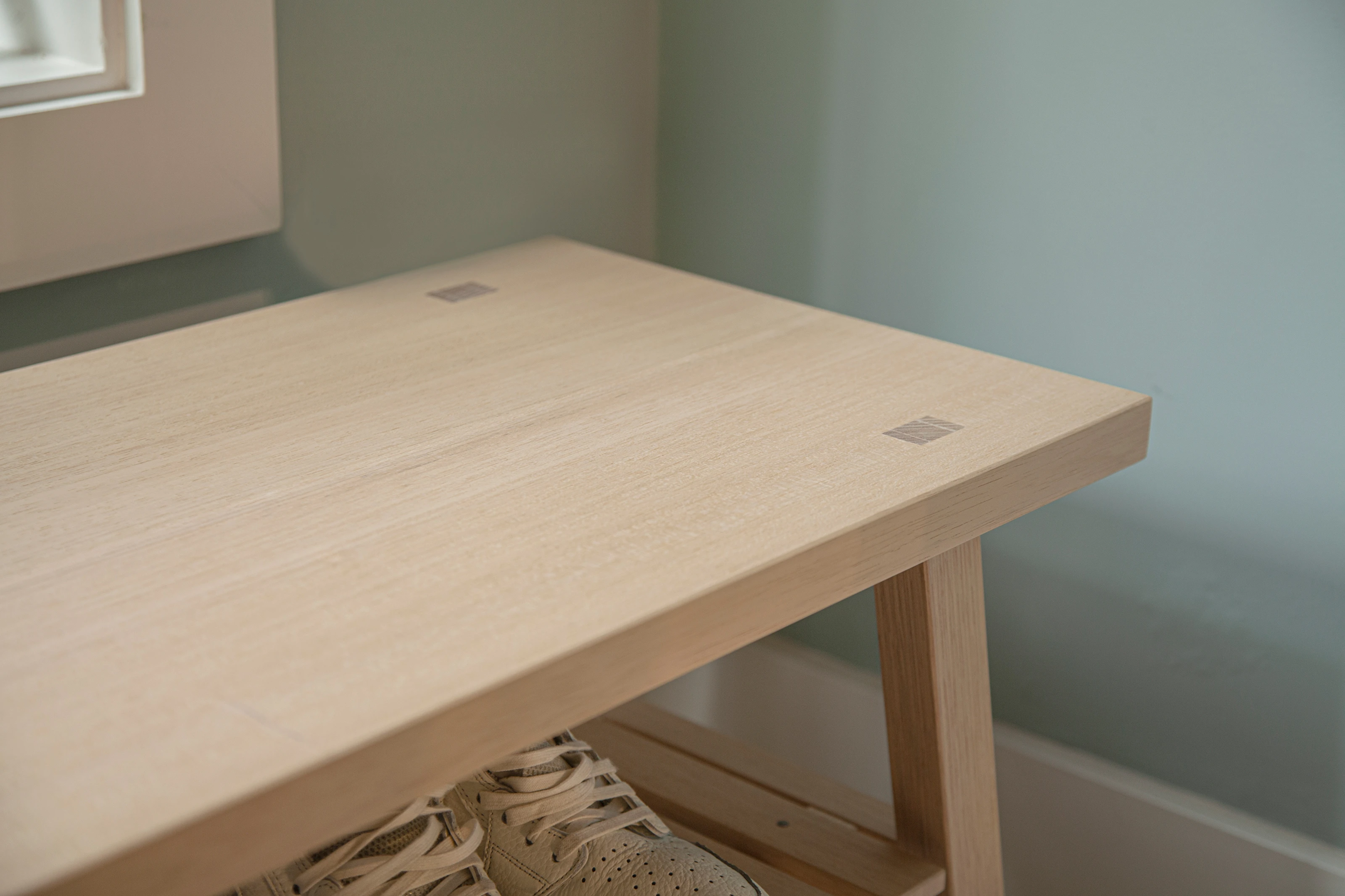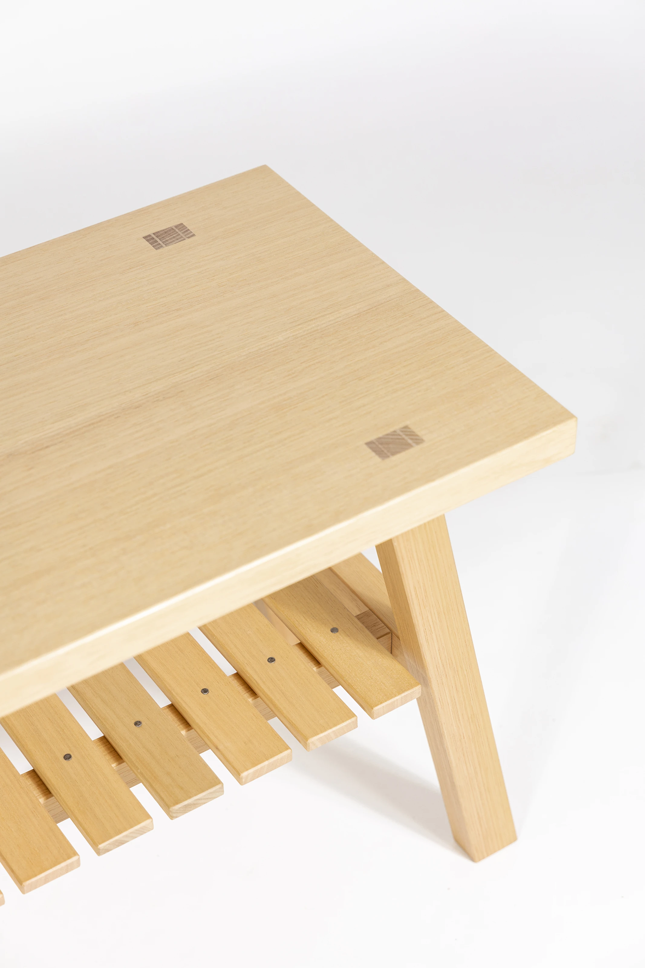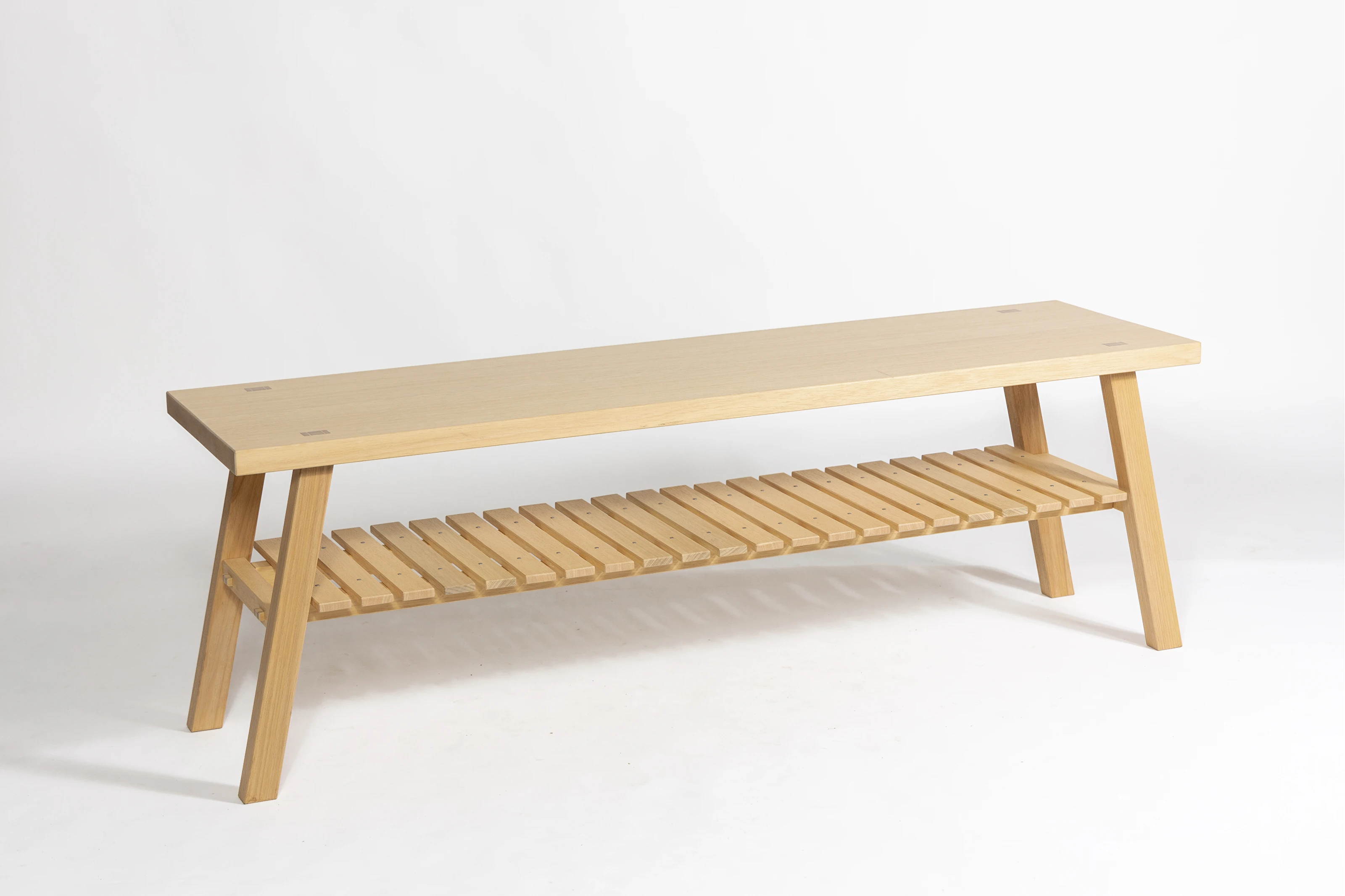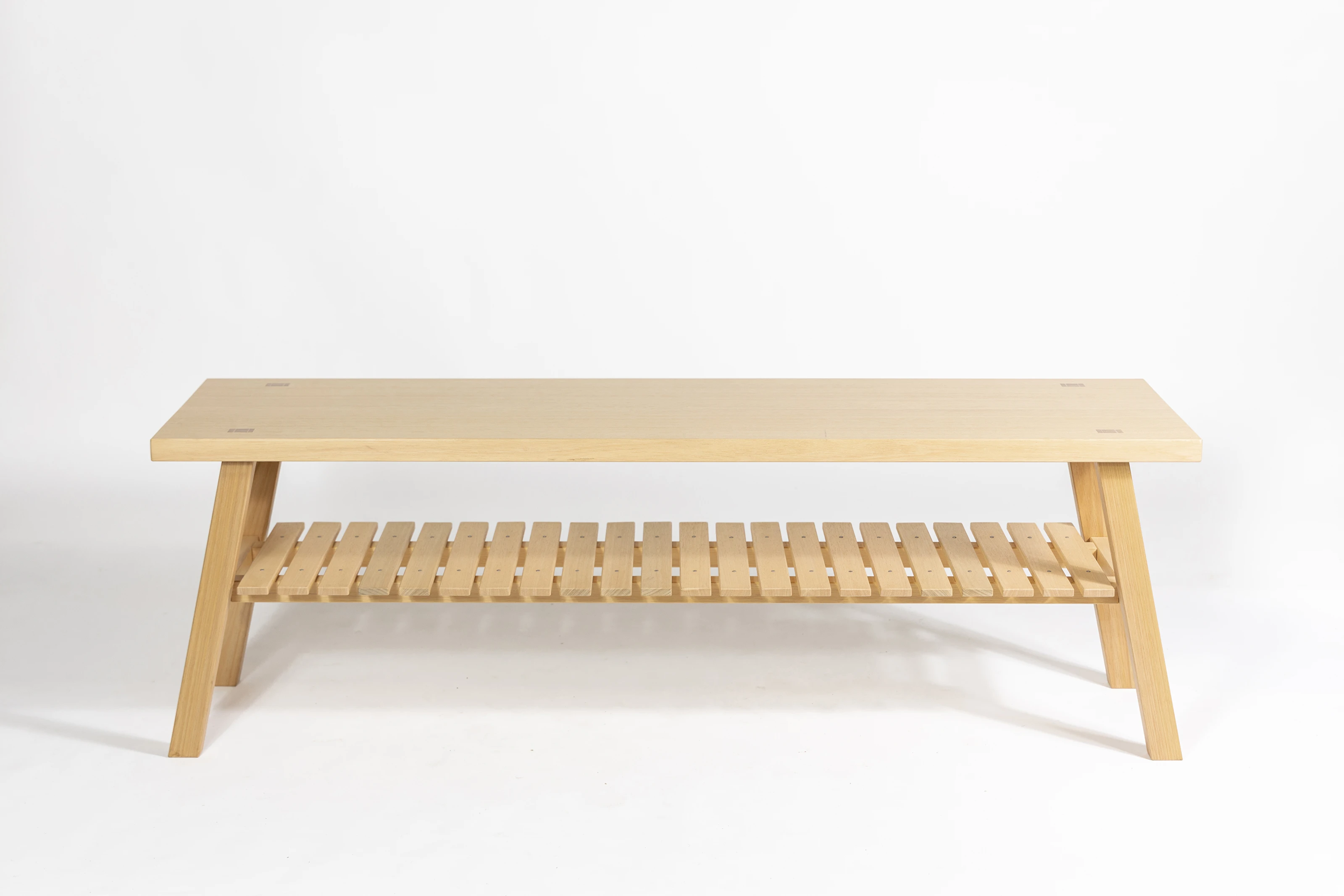 A Sapateira Kono possui um desenho leve e versátil que faz com que ela não seja apenas uma sapateira armazenadora de calçados mas também e um banco confortável para trocas de sapato e repouso no dia-a-dia. Construída em Tauari, madeira de tom muito leve que, com acabamento em verniz à base d'água, preserva sua coloração e fica bem gostoso ao toque.
