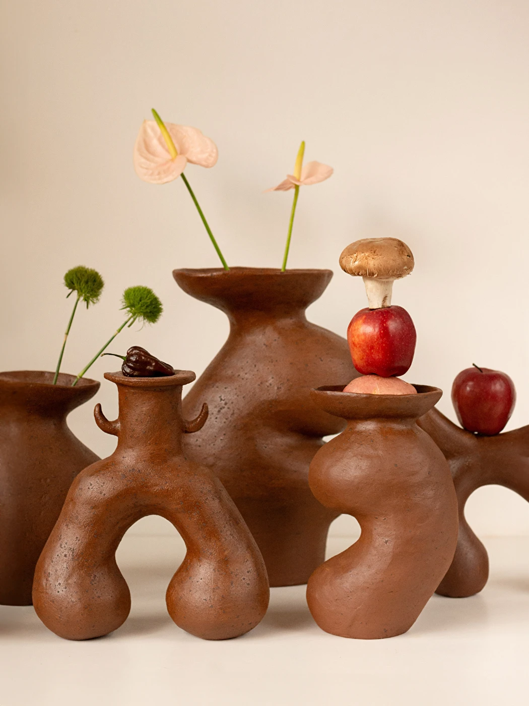 a série “terraforma” traz no acabamento uma rusticidade por conta das texturas táteis e visuais e os tons terrosos também também celebram a terra: de onde viemos e para onde vamos.