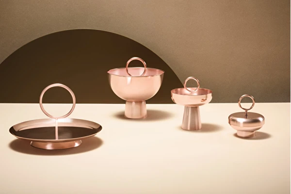 Coleção Stacks desenvolvida por Brunno Jahara para St James, disponível em cobre, prata ou latão.