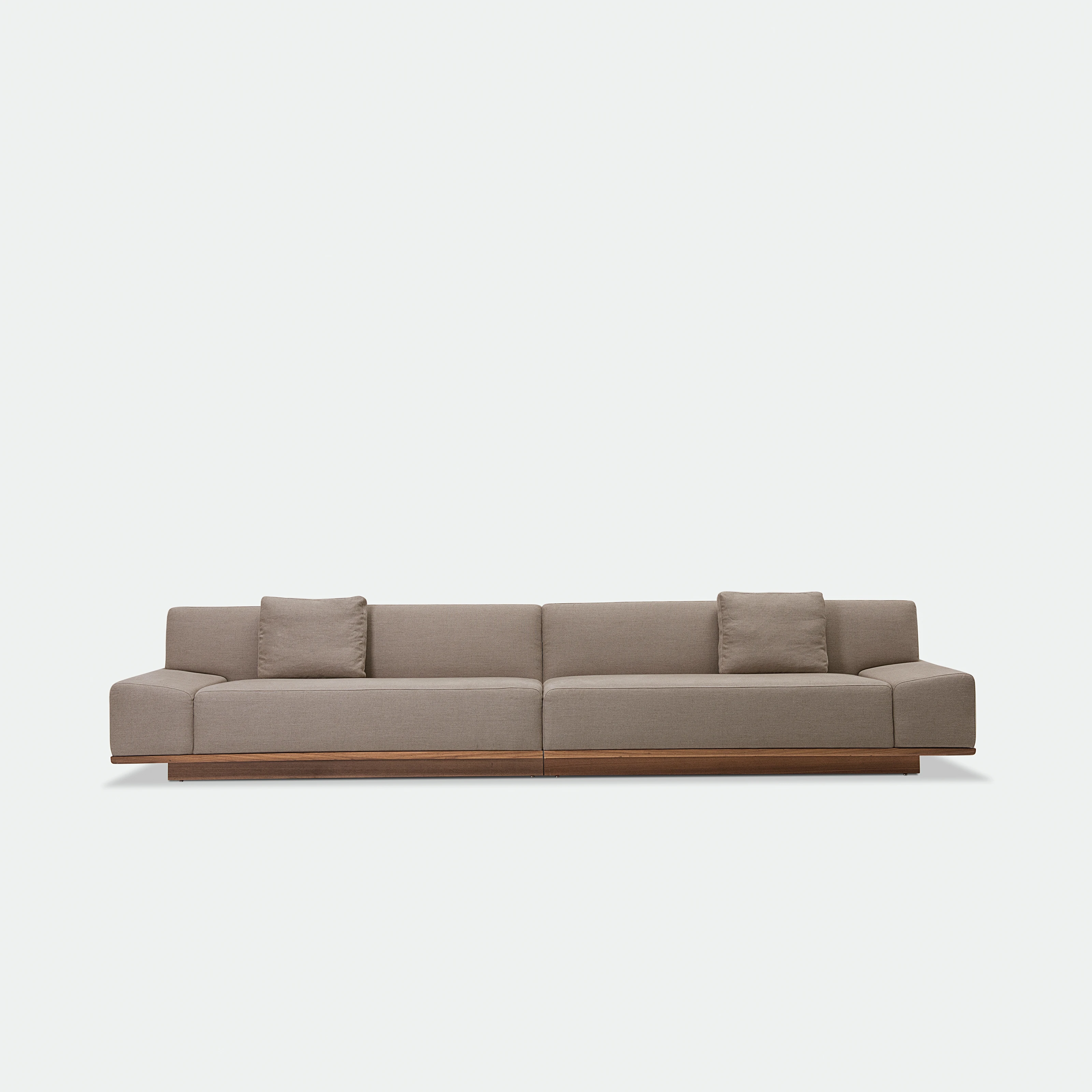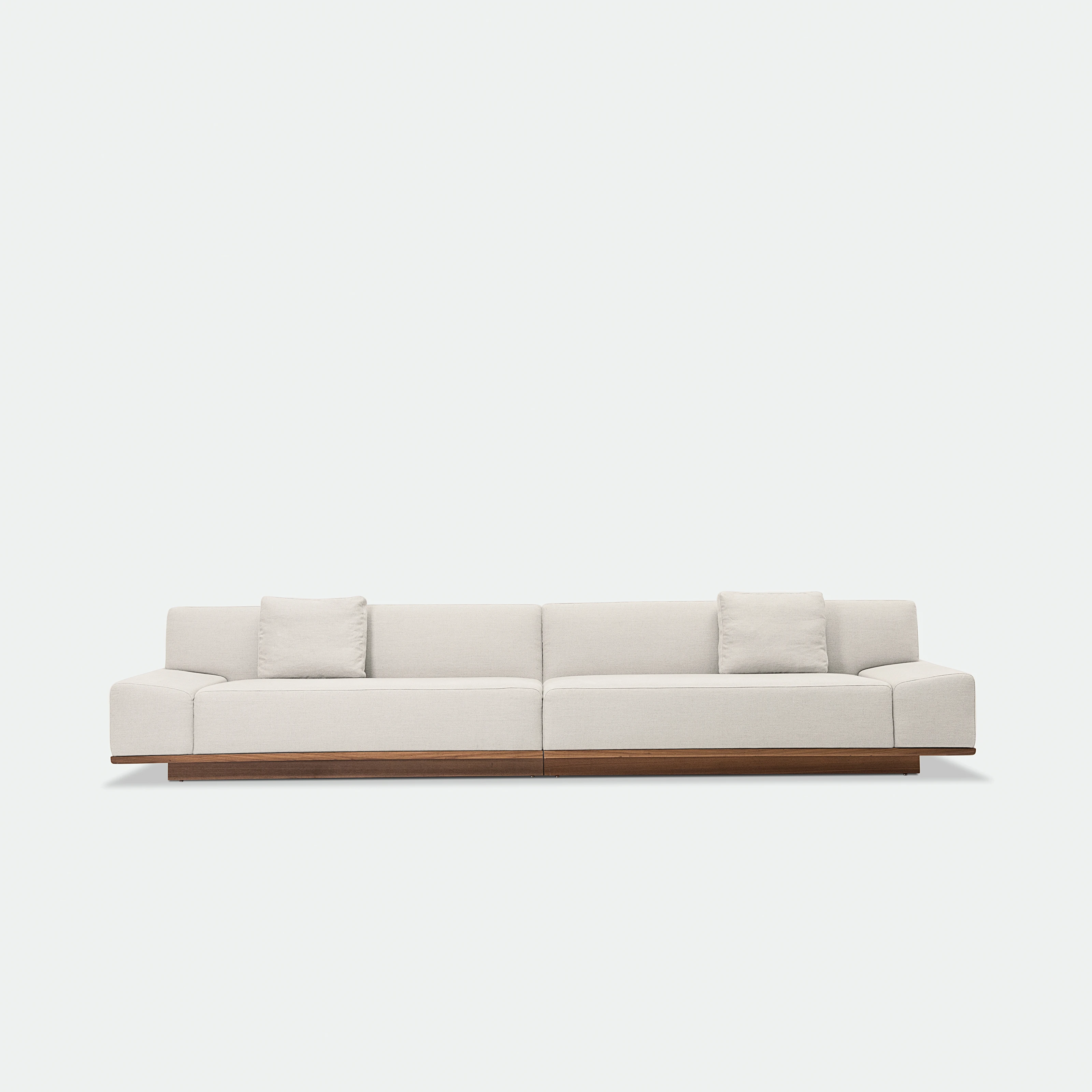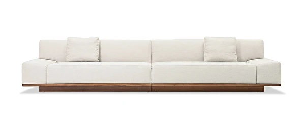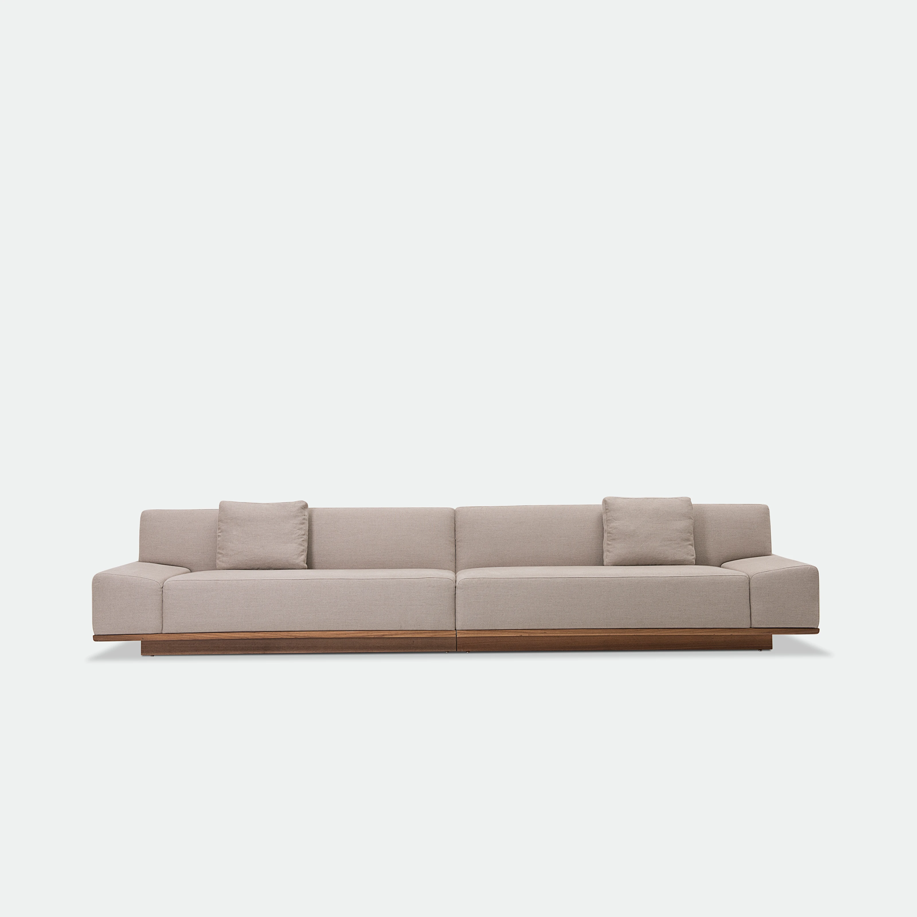 O Sofá Leonam é inspirado pelo estilo Japandi - uma combinação do minimalismo escandinavo com a simplicidade do estilo Japonês - o modelo é caracterizado pelo estofado de linhas retas e mínimas, posicionado acima de uma base de madeira inteiriça, como um tatame.