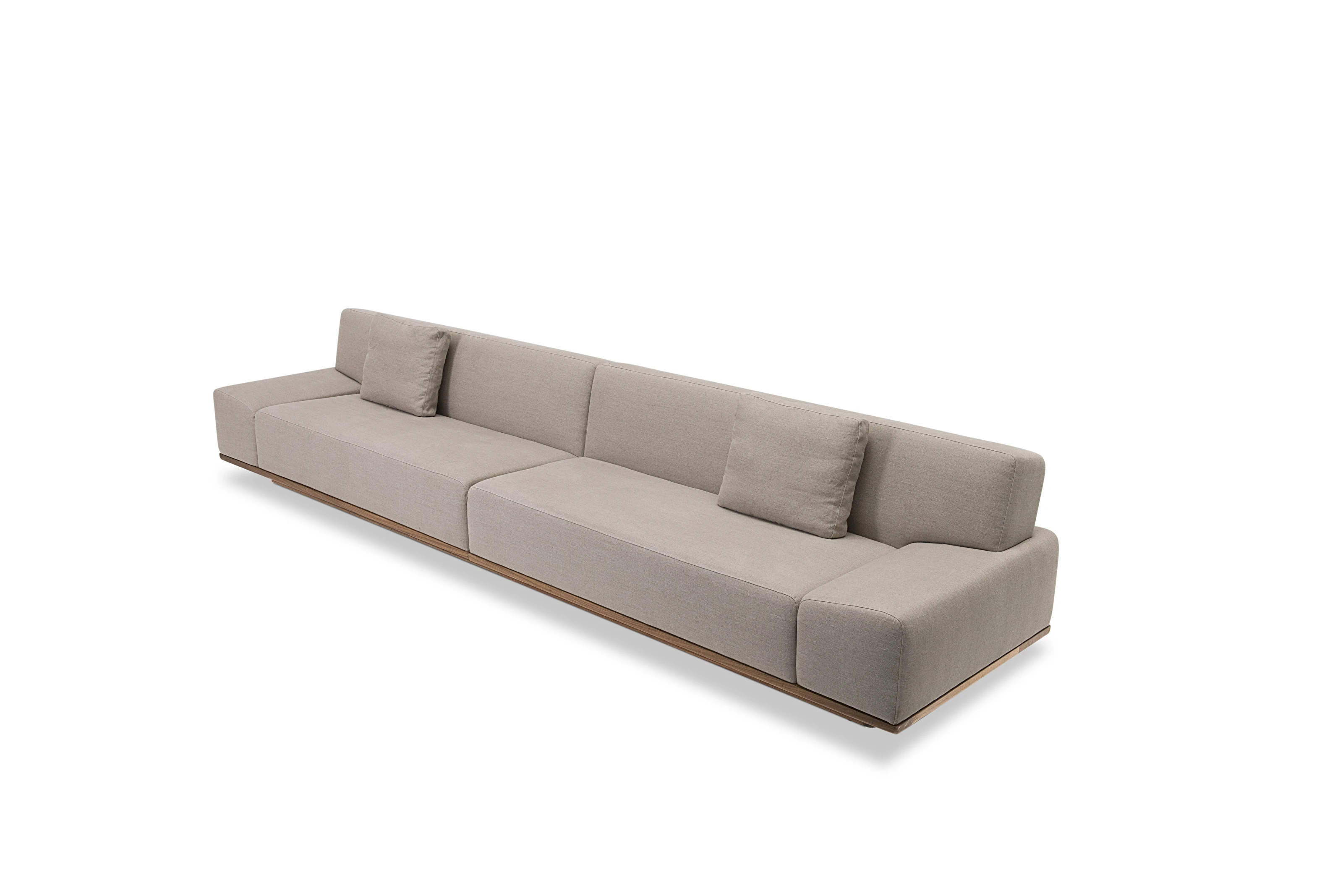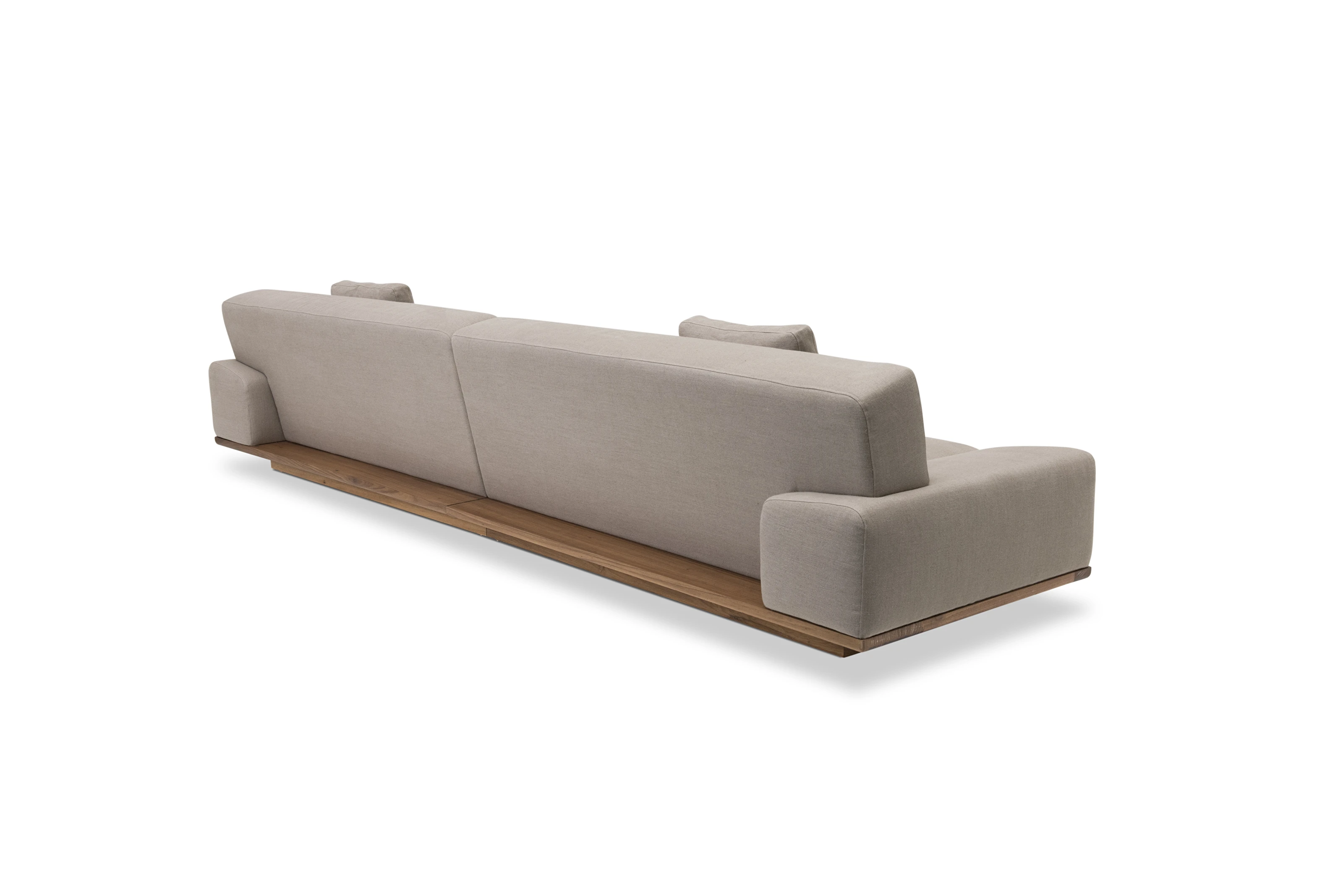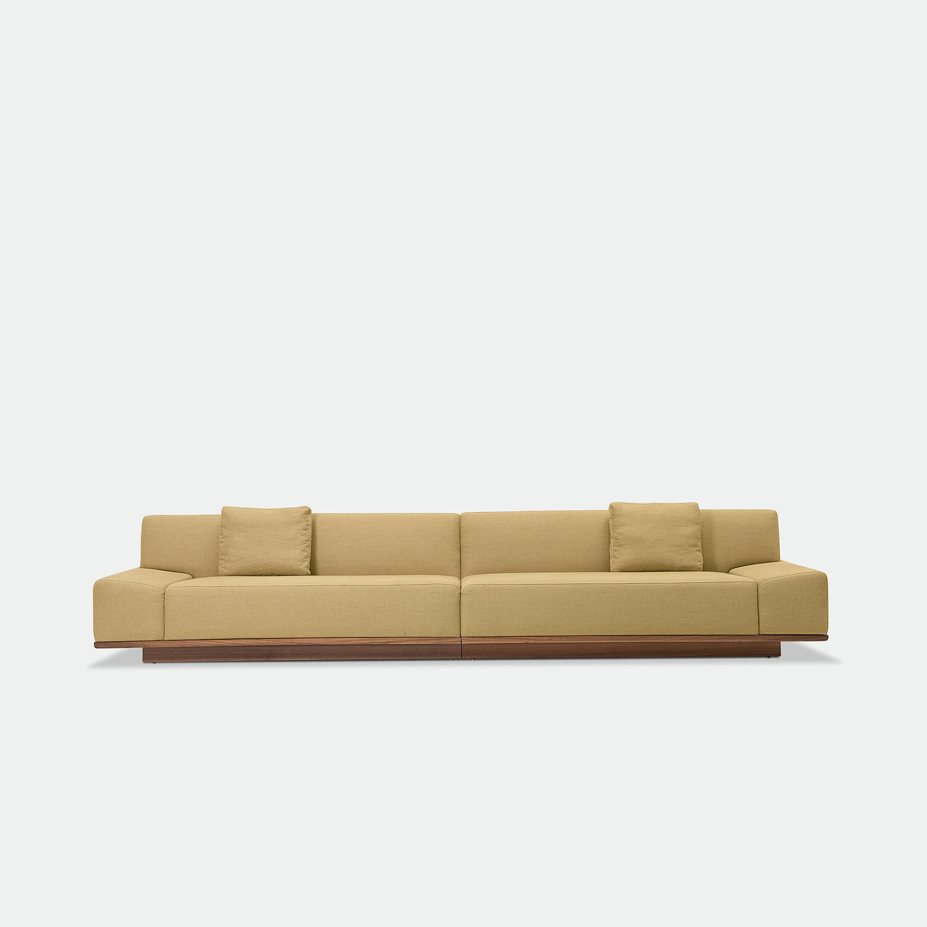 O Sofá Leonam é inspirado pelo estilo Japandi - uma combinação do minimalismo escandinavo com a simplicidade do estilo Japonês - o modelo é caracterizado pelo estofado de linhas retas e mínimas, posicionado acima de uma base de madeira inteiriça, como um tatame.